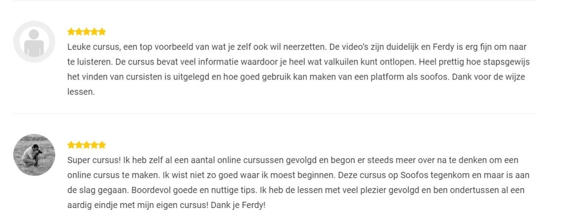 Op Soofos staan bij iedere cursus de beoordelingen van cursisten die het gevolgd hebben. Deze training scoort een 4,8 van de 5 sterren Behoorlijk hoog dus. Ik heb geen negatieve beoordeling kunnen vinden.